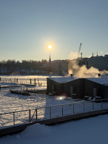 Good morning from Finland! Start your morning at the breakfast buffet of Hobo Helsinki, it's one of the best ones you'll have!! Then head out to start your day by doing one of the most unique activities in the area.. ice floating! Yes, floating on the sea which has been completely iced over. We got all dressed up with so many layers to prevent getting cold then hiked onto a frozen lake, got in the water and relaxed. No I wasn't cold, and yes it was so relaxing! Our guide also gave us some Finnish juice and a chocolate bar making it to be the very best experience!